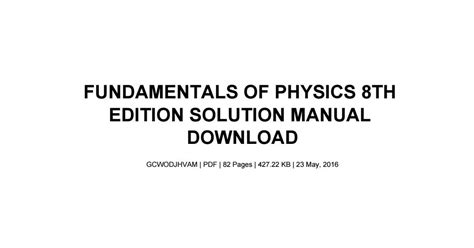 Read Online Answers Fundamentals Of Physics 8th Edition Solutions Doc